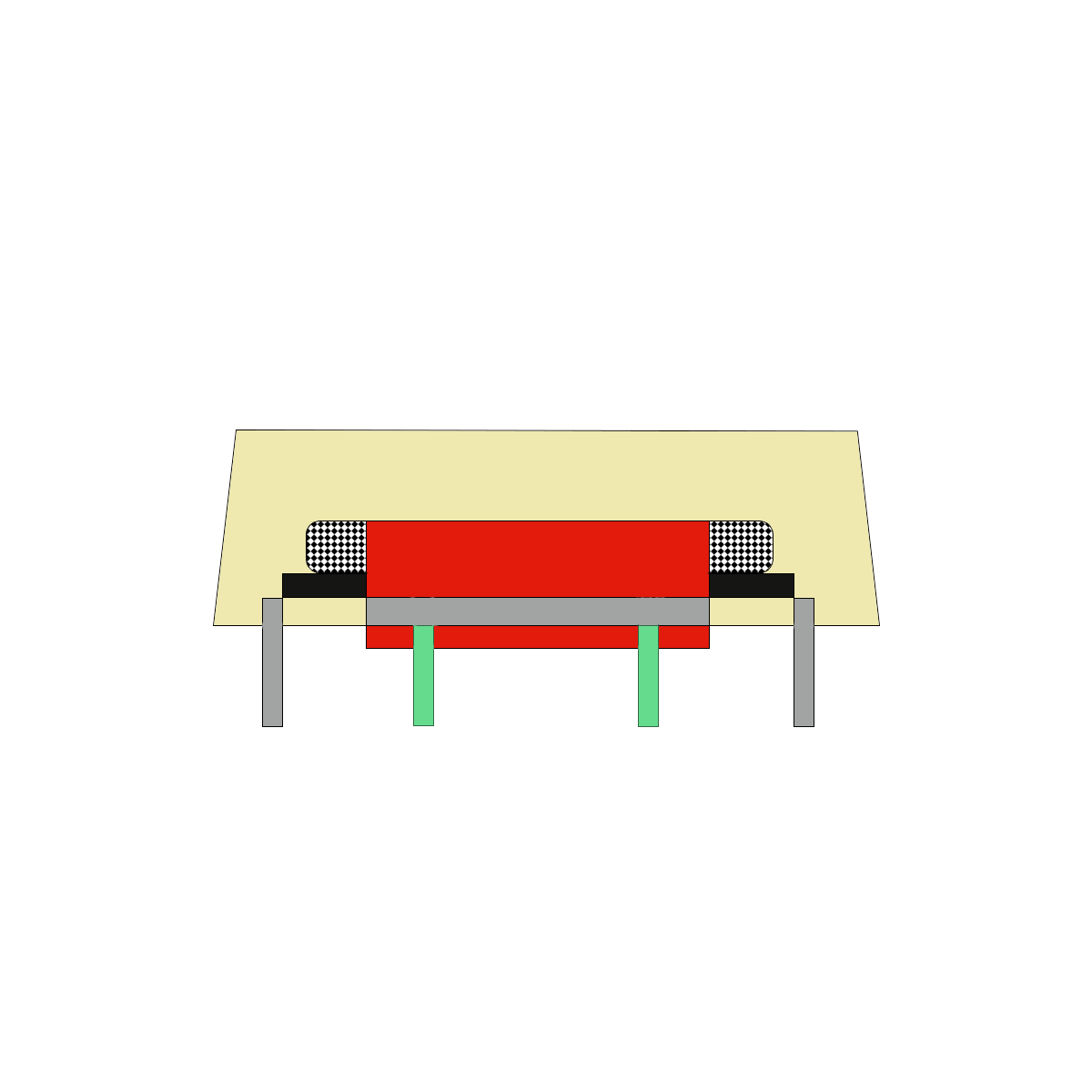 Big Sur Sofa designed by Peter Shire, drawn by Simone Bradford. Front elevation.