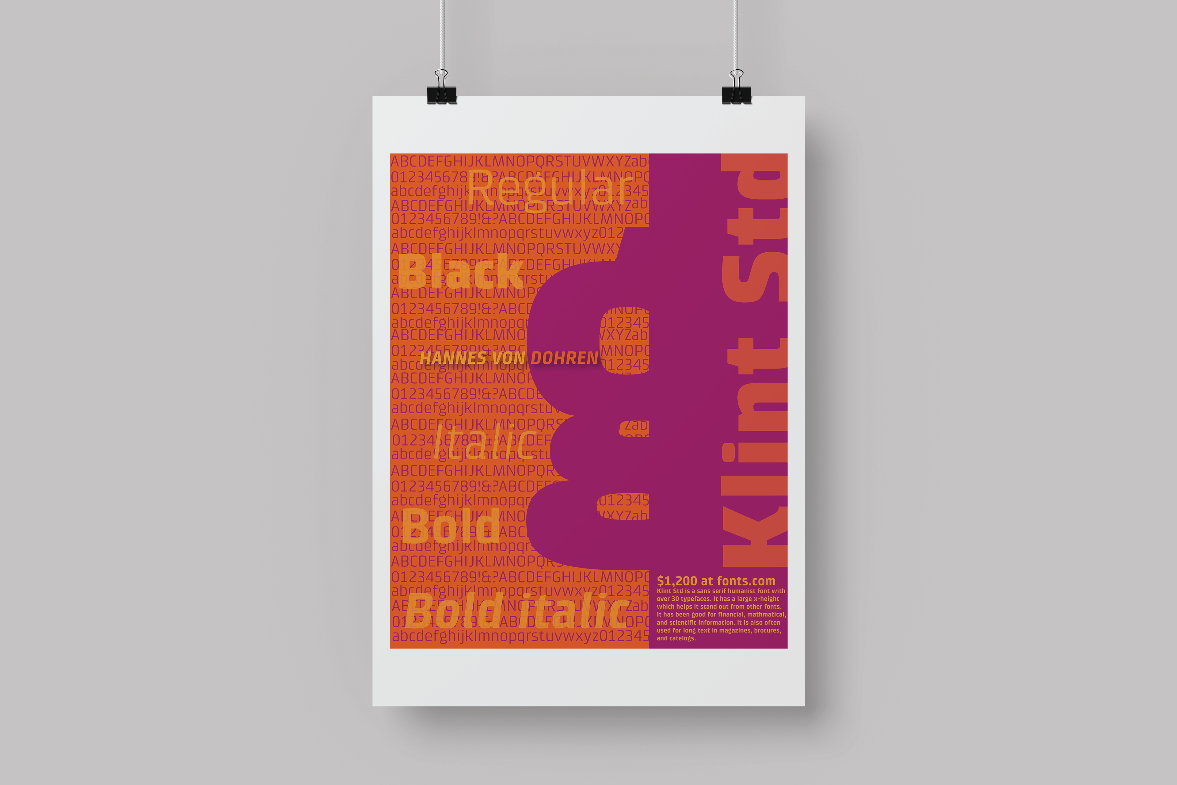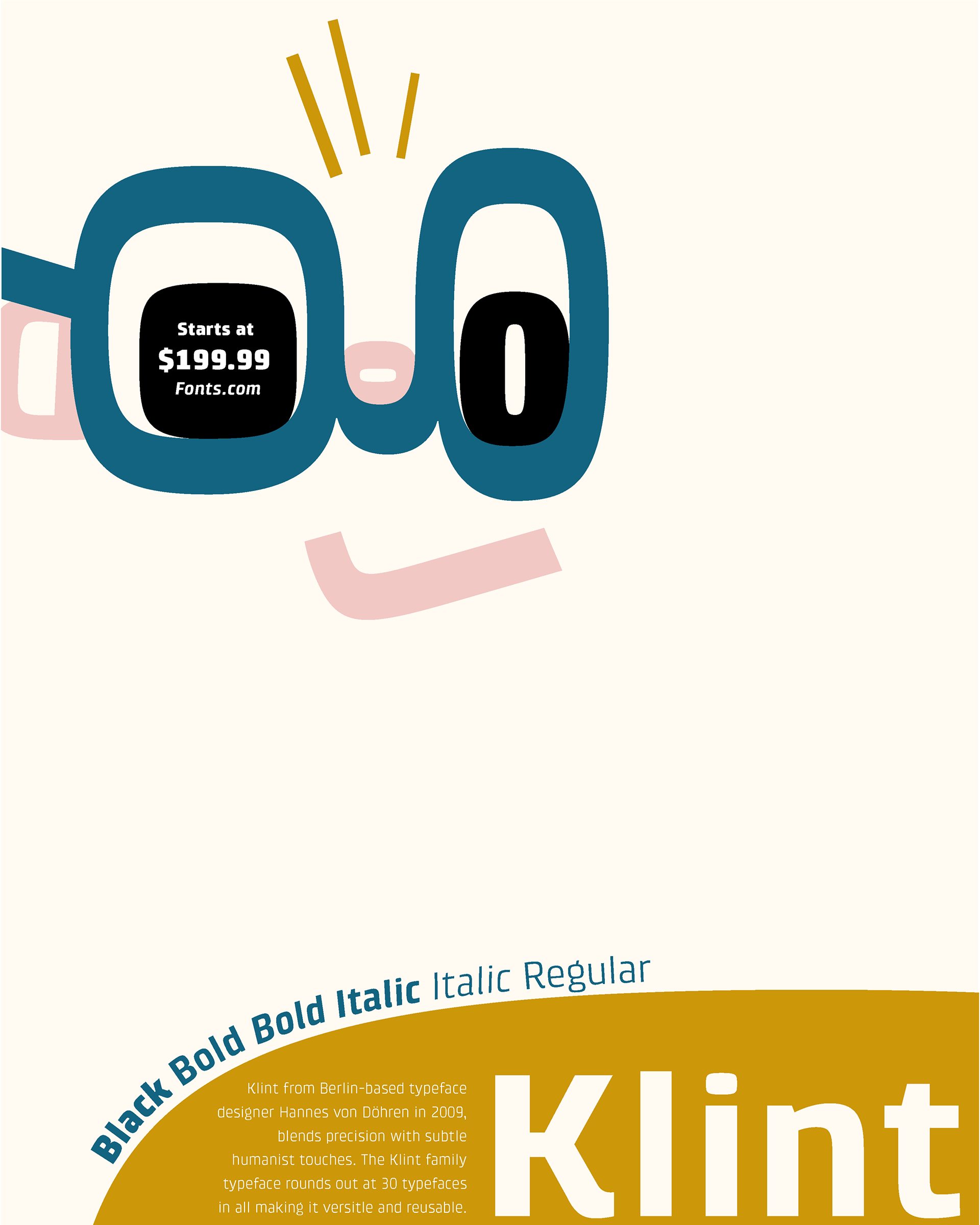 In 2022, student Jennifer McNeil designed this poster to showcase the Klint typeface, featuring a charming expression and an asymmetrical layout.