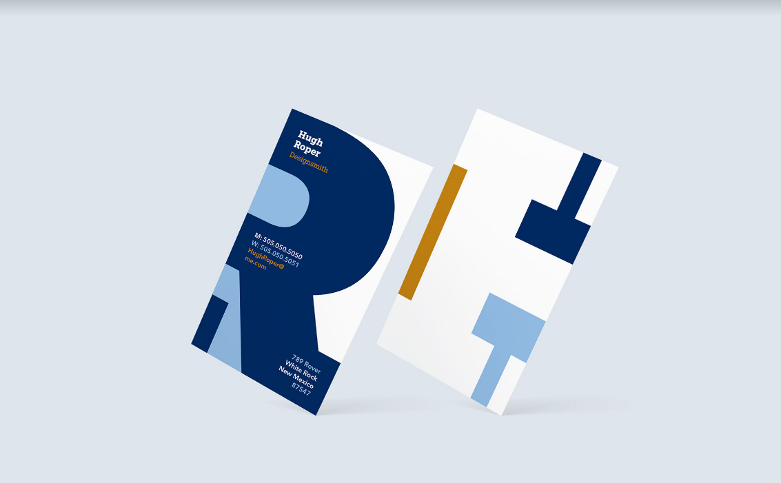 Hugh Roper Personal Business Card Design, 2024 — The front of the card features clear contact information, while the reverse side mirrors the visual style with a simplified negative space design, ensuring the front remains the focal point.